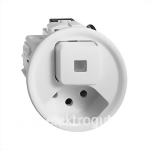 Weiss, 10 A, 250 V AC, L+N+PE mit Steckklemmen, Aus/Wechsel 3/1 L, mit LED gelb 1,0 mA Frontlinse, Orientierungsbeleuchtung, Steckdose Typ 13, Einbautiefe 40 mm, P, IP 20, Befestigungsdistanz 52 mm