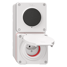 NEVO IP55/IP55 Kombination Druckschalter Aus/Wechsel 3/1 L und Steckdose Typ 13 mit roter Dicktung und Deckel AP