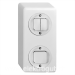 Weiss, Kombination 2 Apparate senkrecht (2x1), Doppel-Druckschalter Wechsel-Wechsel 1/3+3/1 L / Druckschalter Aus/Wechsel 3/1 L, mit Steckklemmen, Anbauhöhe 32 mm, X, IP 20, 120 x 60 mm