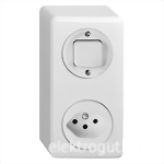 Weiss, Kombination 2 Apparate senkrecht (2x1), Druckschalter Aus/Wechsel 3/1 L / Einfach-Steckdose Typ 13, L + N + PE, mit Steckklemmen, Anbauhöhe 48 mm, X, IP 20, 120 x 60 mm