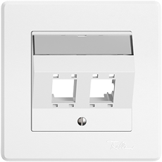 Für R&M freenet Anschlussmodul Kat. 5e/6, mit Trägerplatte • Mit Schrägauslasshaube • Zweifach • Mit Papiereinlage • SNAPFIX® Befestigungssystem • Einbautiefe 37 mm