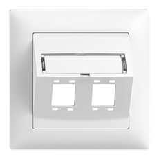 Montageset Kat. 5e/6 • Für R&M freenet Anschlussmodul Kat. 5e/6, Spezial und LC Kupplung Adapter "Kat. 5e/6" • Mit Schrägauslasshaube • Zweifach • Mit Papiereinlage • FMI • weiss • IP20