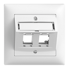 Montageset freenet, mit schräger Steckrichtung, ohne Anschlussmodul, für zwei RJ45-Anschlussmodule freenet, Zweifach, mit Papiereinlage, Einbautiefe 37 mm, FMI, weiss, IP 20, 88 x 88 mm