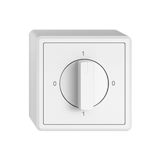 Mit Drehgriff • 16 A, 240/400 V AC • Mit Schraubklemmen • LED-Last max: 200 W • Ausschalter • 0/2 L • KS 0 - 1 - 0 - 1 • SNAPFIX® Befestigungssystem • Anbauhöhe 67 mm • GX.54.A • weiss • IP20 • 74 x 74 mm