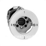 Kennscheibe 0-1-0-2, für Sicherheitsschloss, ohne Zylinder, 10/16 A, 400/500 V AC, mit Schraubklemmen, Umschalter 2/3 L, Einbautiefe 76 mm, P, Weiss, IP 20, Befestigungsdistanz 52 mm