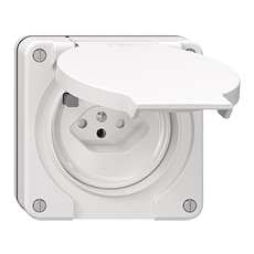 Fehlerstrom-Schutzsteckdose Typ 13 • 10 A, 250 V AC, L + N + PE • Auslösestrom 30 mA • Mit Anschlussklemmen für weitere Steckdosen • Mit Shutter • 87 x 87 mm • Einbautiefe 31 mm • NUP.Q