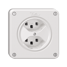 Zweifach-Steckdose Typ 23 • 16 A, 250 V AC, L + N + PE • Mit Steckklemmen • Parallel • Einbautiefe 32 mm • NUPU.Q • weiss • IP21 • 87 x 87 mm